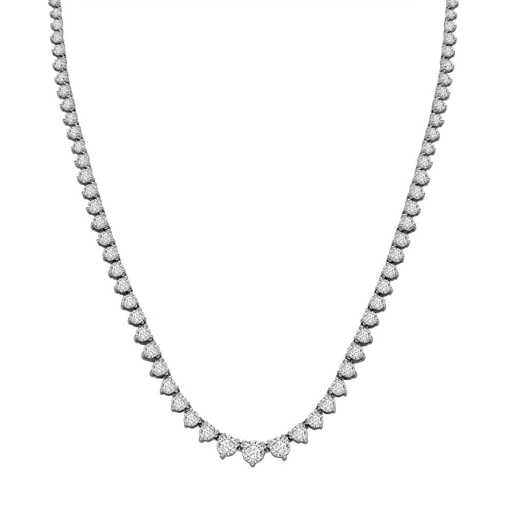 18ct White 15.00ct Dia 17″ 3 Claw Graduated Line Necklace