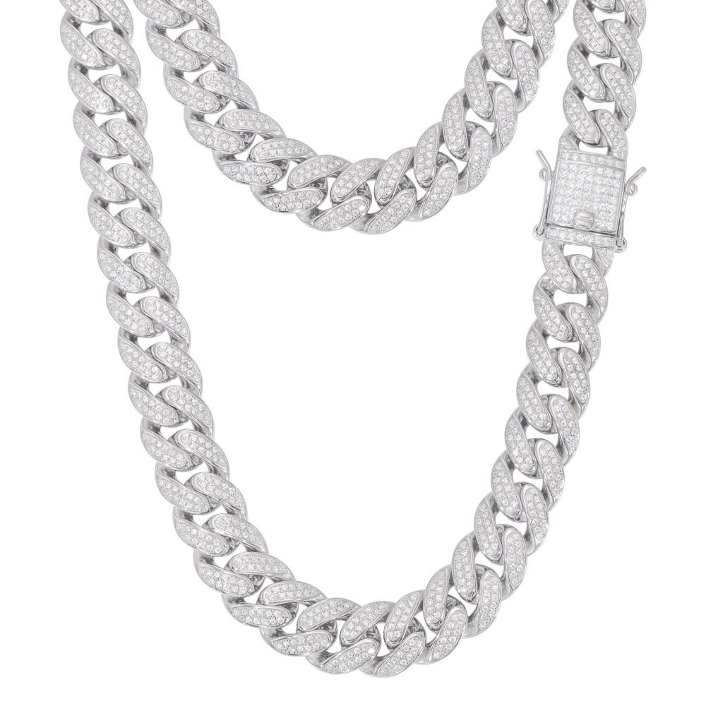 925 Silver CZ Set Cuban Chain 12.0mm
