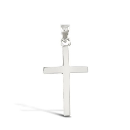 solid 9ct white gold hand finished light weight cross pendant. (Height includes bale/loop)