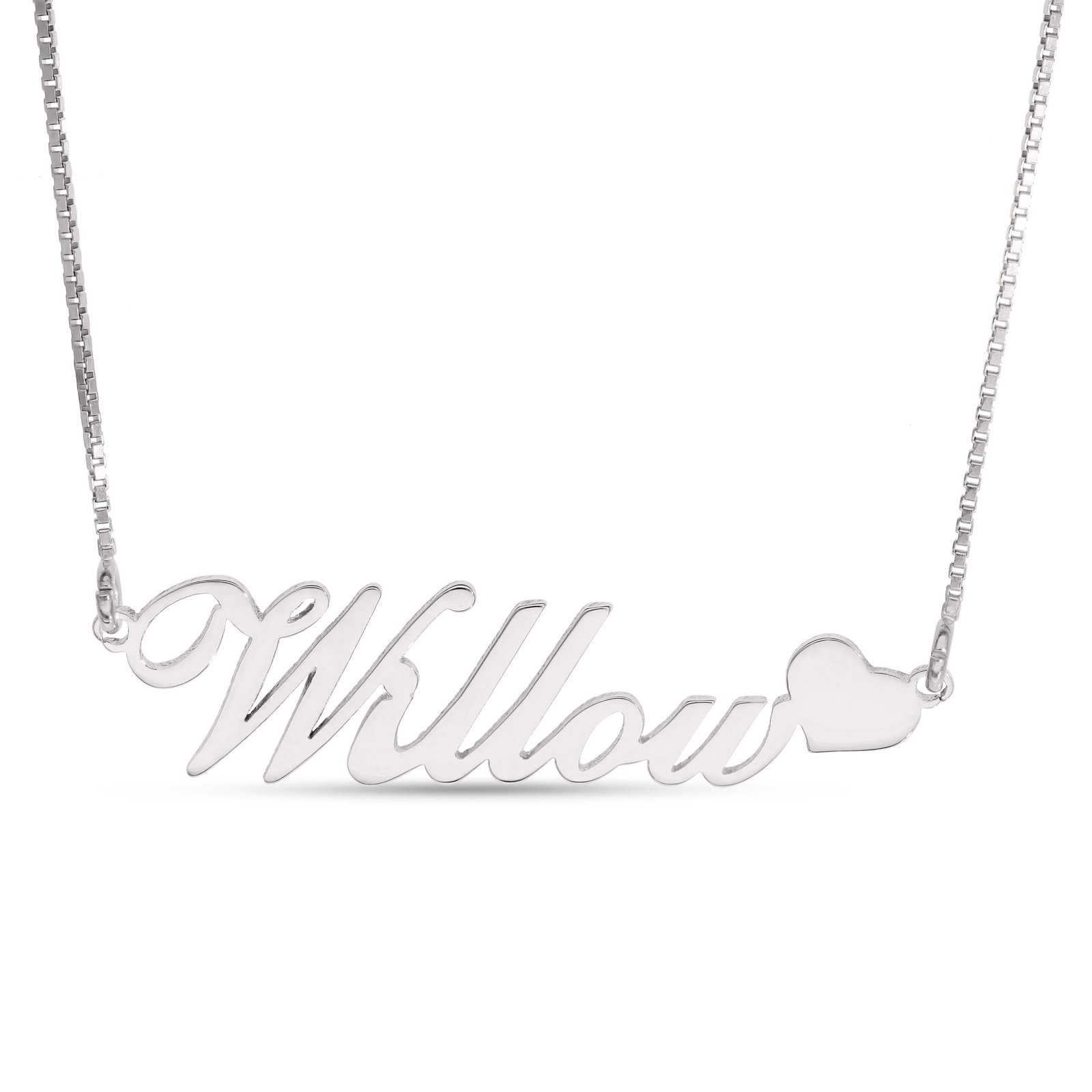 925 Silver personalised nameplate in italic capital and lowercase style writing. Price per name. Please note that dimensions and weight will vary per order. Each bespoke jewellery item is unique and made to order, and therefore will be despatched within 7 – 10 days. Please note that bespoke, personalised and engraved items cannot be returned. This nameplate comes with a chain.