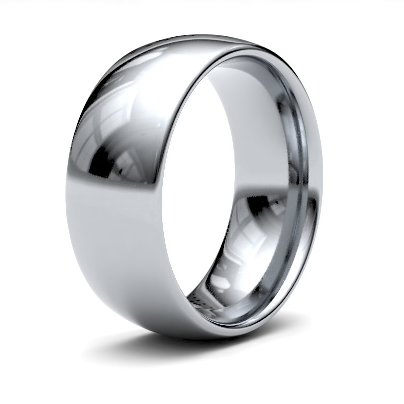 Bespoke hand-made 18ct White Gold 8mm standard weight Court wedding / commitment ring. Features a brilliant hand-polished mirror-like finish. Each Bespoke jewellery item is unique and made to order, and therefore will be despatched within 2 weeks. Please note that bespoke, personalised and engraved items cannot be returned.